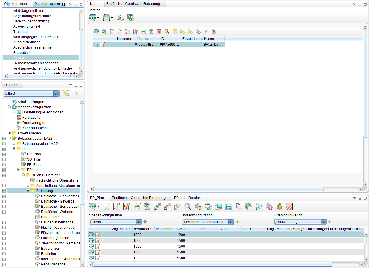 Es gibt aktive und inaktive Pläne/Objekte. Im Auskunftmodus werden nur aktive Objekte dargestellt, welche über einen eigenen Explorerteilbaum gefiltert werden. Daneben gibt es für jeden Plan (aktiv oder inaktiv) einen eigenen Explorerteilbaum.